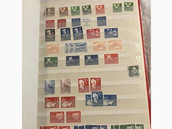 Frimärksalbum fullt av frimärken cirka 50 % svenska och 50 % utländska.
