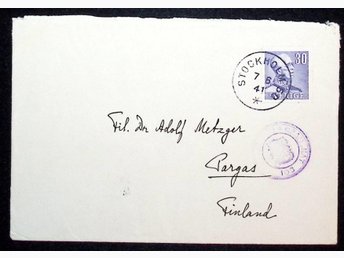 Finland Brev Granskat Stempel. Stmp. Stockholm 50 * 7 6 41, till Metzger, Pargas