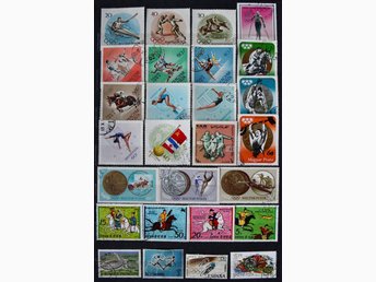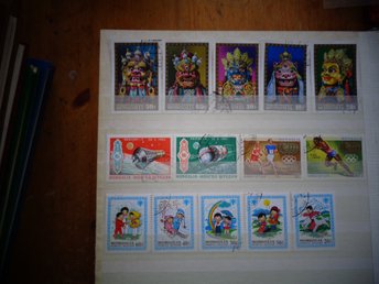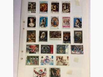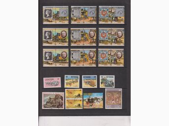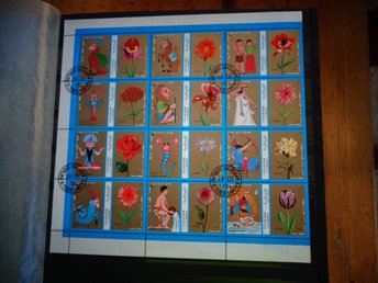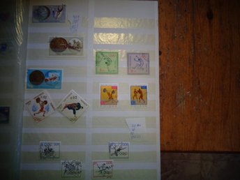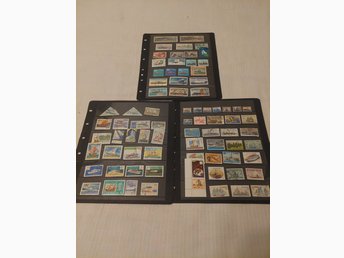 4 stycken blad med 75 stycken frimärken från Hela Världen