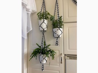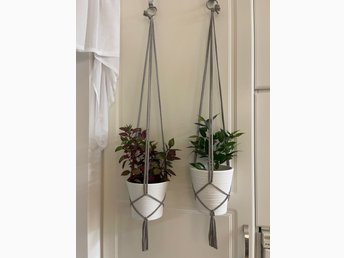 Amplar för blomkrukor (13-15 cm) gråa, makramé, växt, plants
