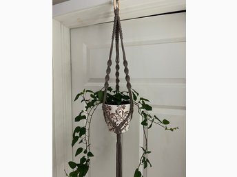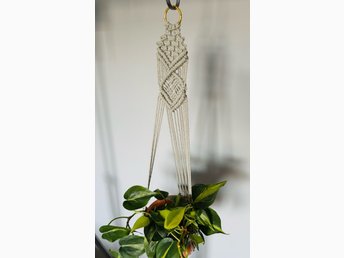 Ampel, plant’s hanger , handmade, macramé grå (13-15 cm)