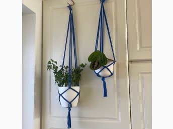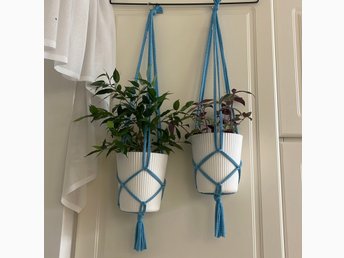 Amplar för blomkrukor (13-15 cm) blåa, makramé, växt, plants
