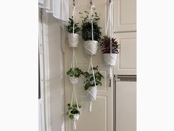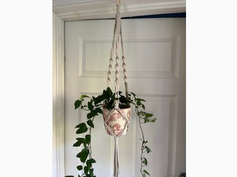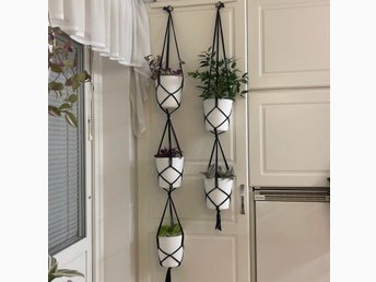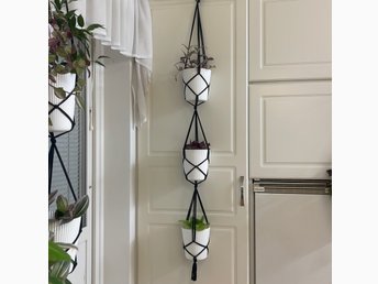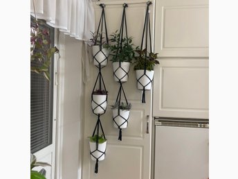 Ampel i makramé JUNNIE FYRKLÖVERN /plant hanger/ inredning med växter
