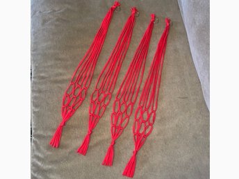 Fyra styck röda Amplar för blomkrukor, makramé, Hanger för plants