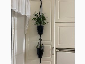 Ampel, plant’s hanger , handmade, macramé svart (13-15 cm)