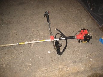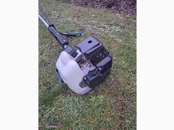 Stor kraftig röjsåg mycket lite använd. Startar lätt med bra trimmerhuvud
