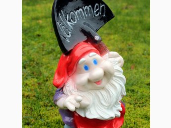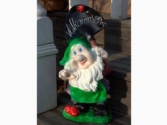 Gipsfigur av en Tomte ”Välkommen” (grön)
