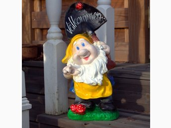 Gipsfigur av en Tomte ”Välkommen” (gul)
