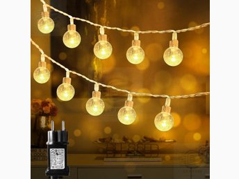NYTT LED-ljusslingor• 6 m Varmvit• 60 LED-kristallkulor• IP65 Vattentät•8 lägen