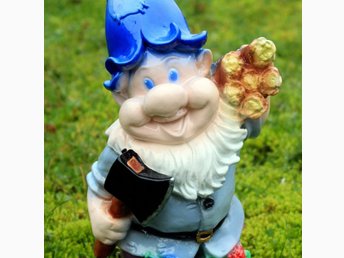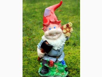 Trädgårdsdekoration - Välkommen figur, tomte med fågel