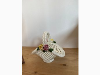 Hand painted ITALY Vit trådkorg keramik korg med blommor