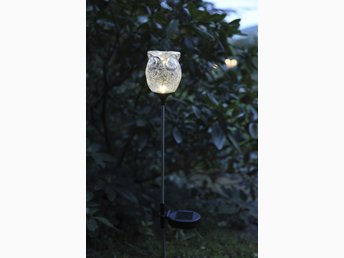Solcellspinne Howly – Glasuggla med varmvitt ljus (75 cm)
