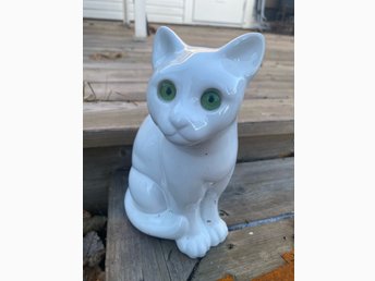 Fågelskrämma trädgård Vit porslin Katt med Gröna Ögon