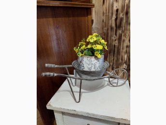 Blomkruka Skottkärra i metall - Shabby Chic - Blomsterställ - Trädgård - Present