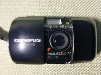 "OLYMPUS µ[mju:]-1 LENS 35 MM 1:3,5 KOMPAKTKAMERA" TILLVERKADES 1991.