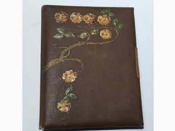 Antikt Fotoalbum med Blomsterdekor-Mjölby, Södertelje, Upsala, Chicago mfl.