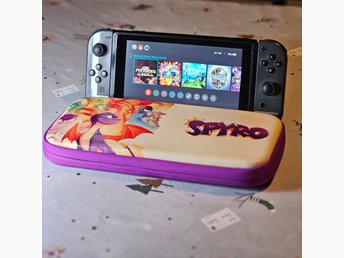 Nintendo Switch med Spyro-fodral och 128 GB minneskort
