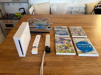Nintendo Wii konsol med 2 kontroller och 5 spel