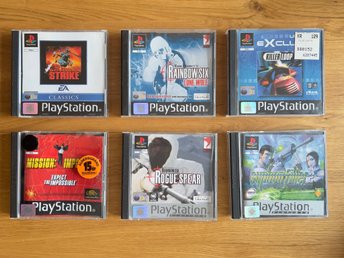 PS1 spelpaket – Syphon Filter 2, Rainbow Six, Mission Impossible m.fl. (6 spel)