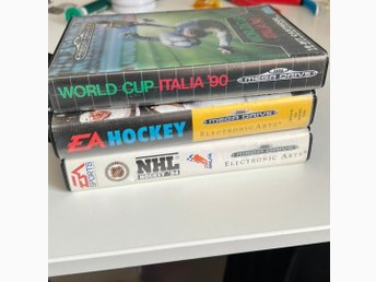 3 Sega Mega Drive spel: World Cup Italia '90, EA Hockey, NHL Hockey '94