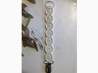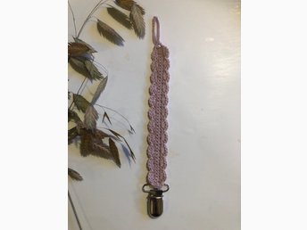 Napphållare nappband virkad med ögla för napp med ring barn baby ljusrosa rosa