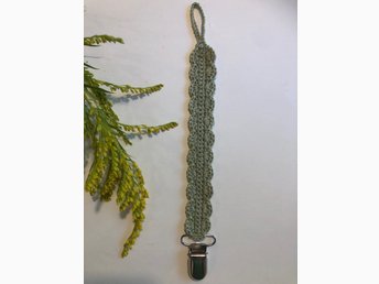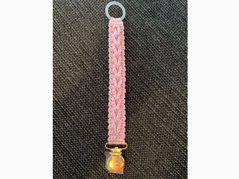 Virkad napphållare/nappband. Ljusrosa. Med clips i hög kvalitet. Ny