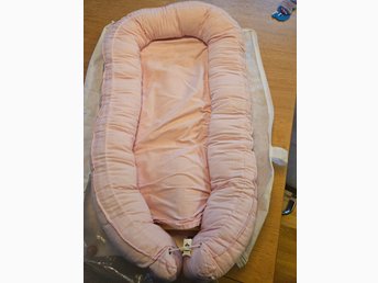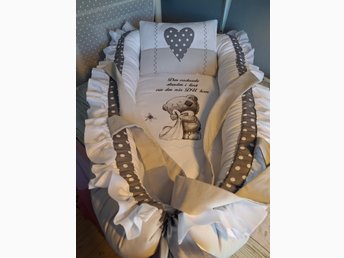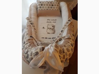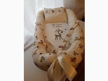 Ett mysigt babynest med tillhörande kudde, täcke, handtag, hemsytt !