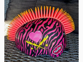 Barnhjälm med rosa zebra-mönster och mohawk, storlek 54-58 cm
