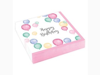 20 Servetter - Happy Birthday & Ballonger 25x25 cm