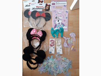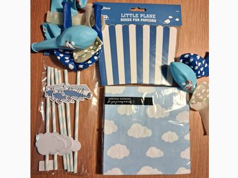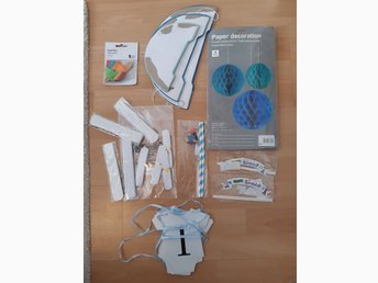 Engångstallrikar och många tillbehör till dop, baby shower, småbarns kalas, nya
