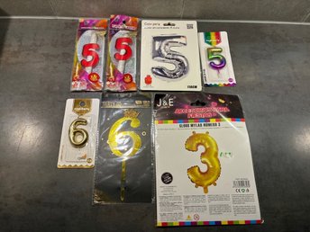 Partydekorationer! STORA ballonger, tårtfyrverkerier, tårtljus! 3, 5 och 6 år!