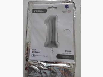 Sifferballong, siffran 1 i silver, folie, 40"/102 cm, fint skick
