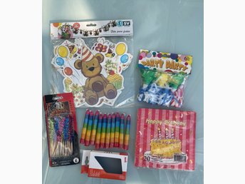 Kalas födelsedag födelsedagskalas tårtljus girlang servetter party