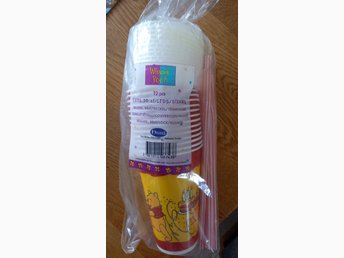 Engångsmuggar med lock och sugrör, Nalle Puh och hans vänner, Duni, nyskick