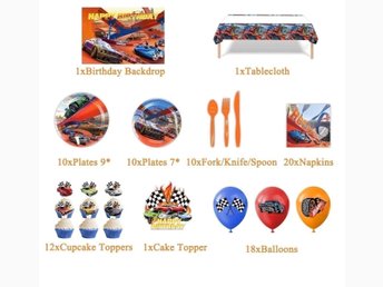 Hot Wheels bilar kalasset födelsedag tallrik bestick 10pers