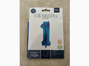 Oanvänd ljusblå folieballong siffra "1" med guldkrona