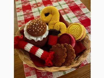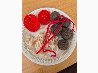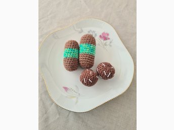 Leksaksmat,virkad, virkade kakor, kreativ lek, jullek, bomullsgarn