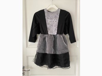 Svart, grå klänning, längd från axel och ner 65 cm.