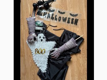 Halloween paket - fönsterdekoration, spöke, läskiga händer, rosor, cape mm