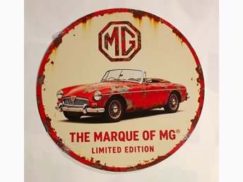 Retro klassisk MGB skylt i plåt C:a 20 cm diameter