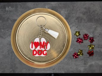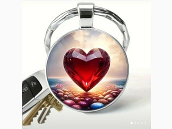 1 st Nyckelring i metall och glas med ett rött hjärta!