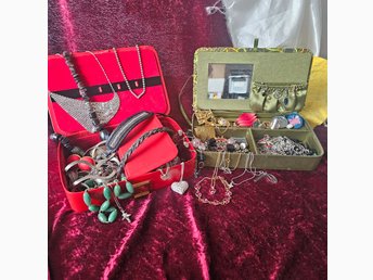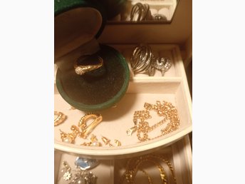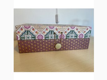 Smyckeskrin, smyckeslåda, lila, guld, grön