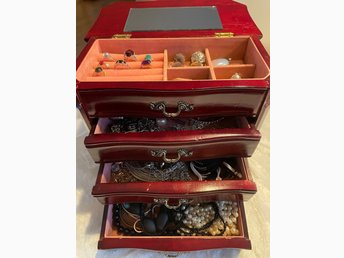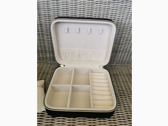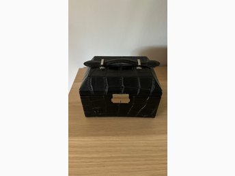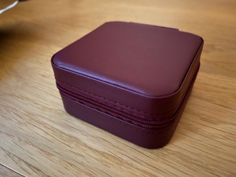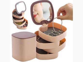 Resesmyckeskrin i skinnimitation ring armband spegel smycken smyckes låda örhäng