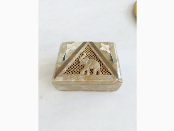 SMYCKESSKRIN, trä & pärlemo, vintage
