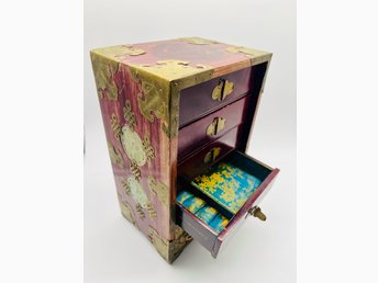 Elegant asiatiskt smyckeskrin i trä med jade & mässingsbeslag