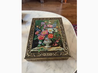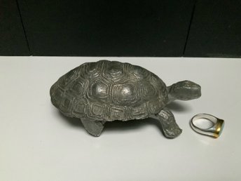 Underbart antikt smyckeskrin, Italien 1960-tal. Sköldpadda i metall, fint skick!