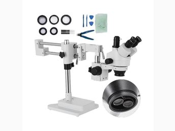 3.5X-90X Stereomikroskop, Trinokulärt, 360° Roterbart med Pelarstativ
