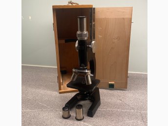 Carl Zeiss Jena Mikroskop äldre med Trälåda