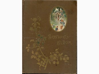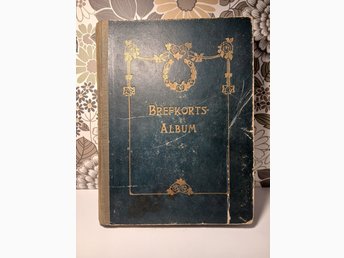 Brunt vykortsalbum full med vykort från Sverige samt utomlands