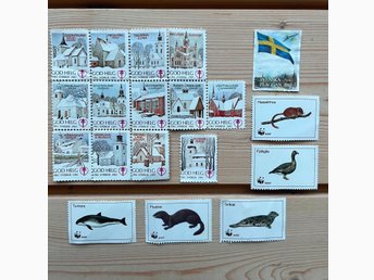 Brevmärken från 1982, 1983, God Helg och brevmärken från WWF - Fint använt skick